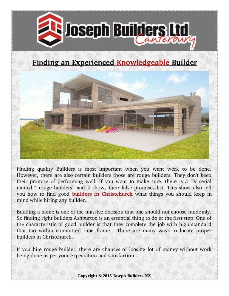 Joseph builders are canterbury based construction company. It is 85 kilometres (53 mi) south west of christchurch and is sometimes regarded as a satellite town of christchurch. New builds of distinction, we're the home builders new zealander's trust for superior workmanship ashburton. We are excited to be welcoming back 510 students to our building! Where do you need a builder?